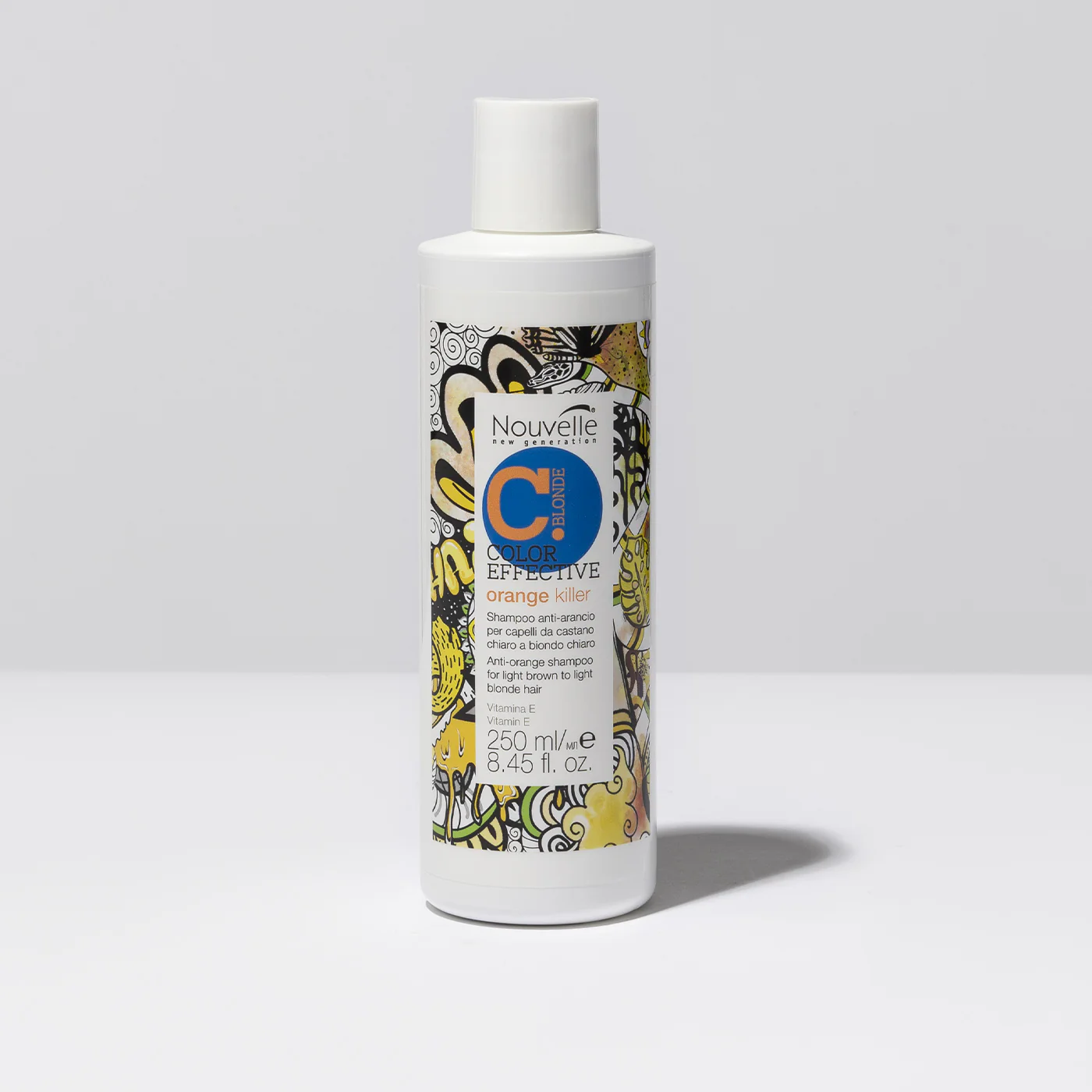 It cleanses gently and neutralizes orange reflections on natural/dyed/lightened hair (tone depth 5/8), making colour natural and shining.
